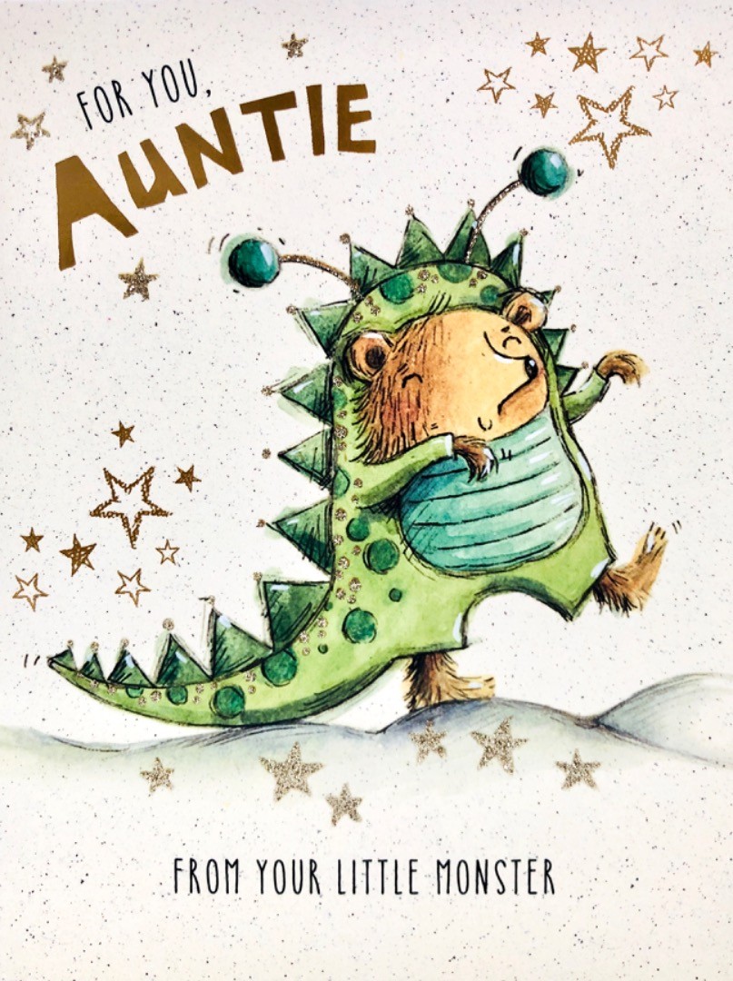 For You Auntie From Your Little Monster Bear Card for Birthday or Any Occasion