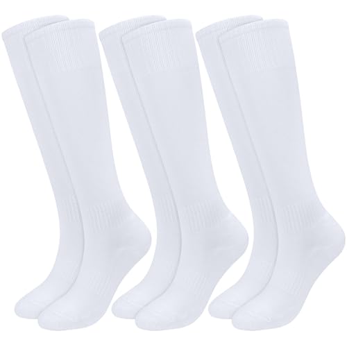 KOOOGEAR 3 Pairs Kids Football Socks Black White Long Sports Sock Youth Comfortable Cushioned Trainer Socks for Running Hockey Football Rugby (UK, Age, 9 Years, 12 Years, Regular, 3 Pairs White)