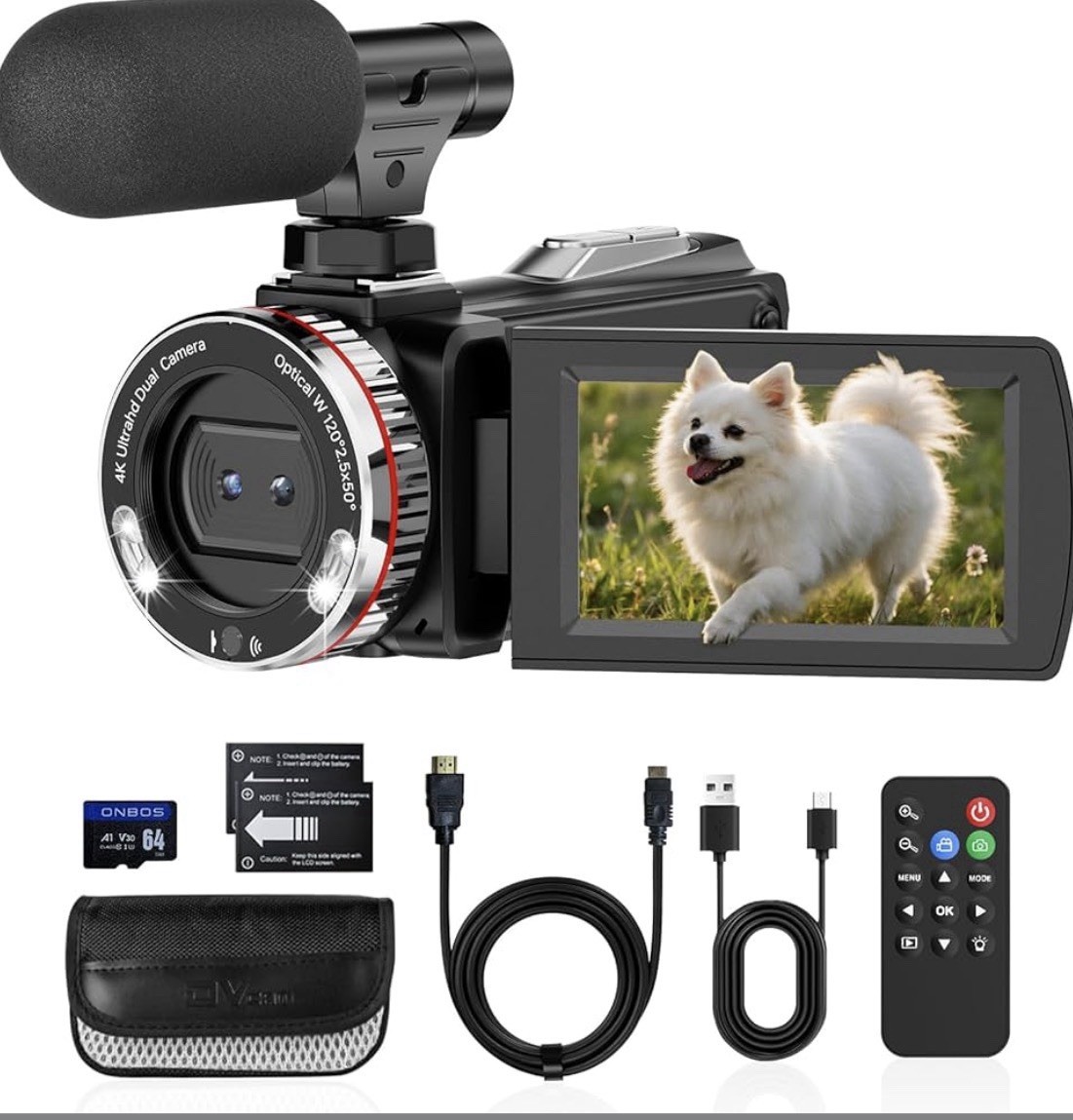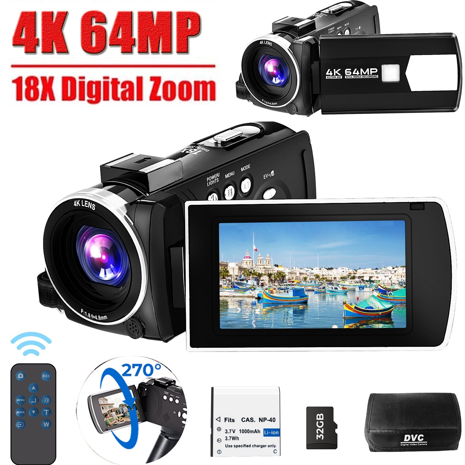 4K Camcorder Video Camera 64MP Youtube Vlogging Camera 18XZoom Remote Control