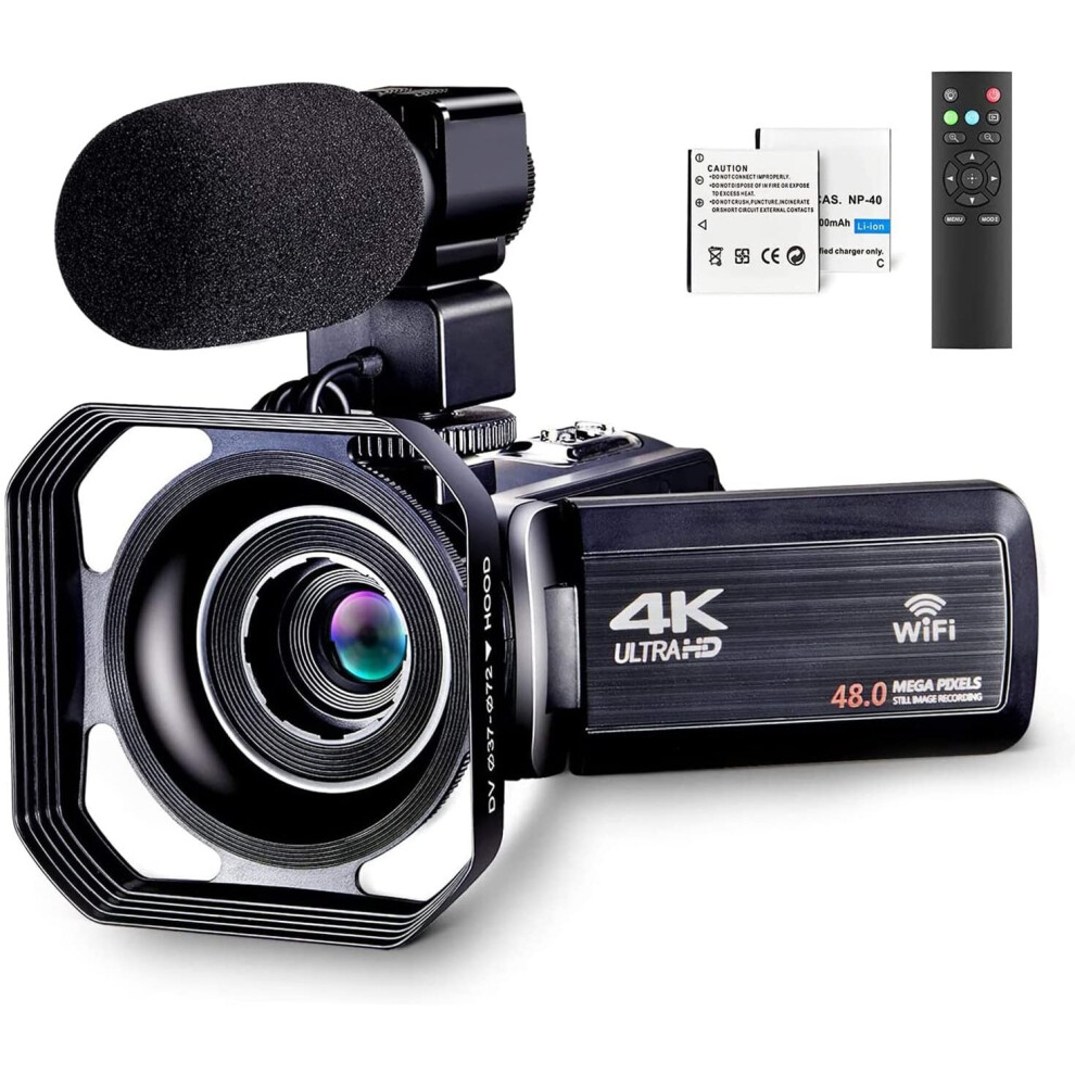 4k Video Camera Camcorder for YouTube Ultra HD 4K 48MP Vlogging Camera with Microphone & Remote Control WiFi Digital Camera 3.0" IPS Touch ..