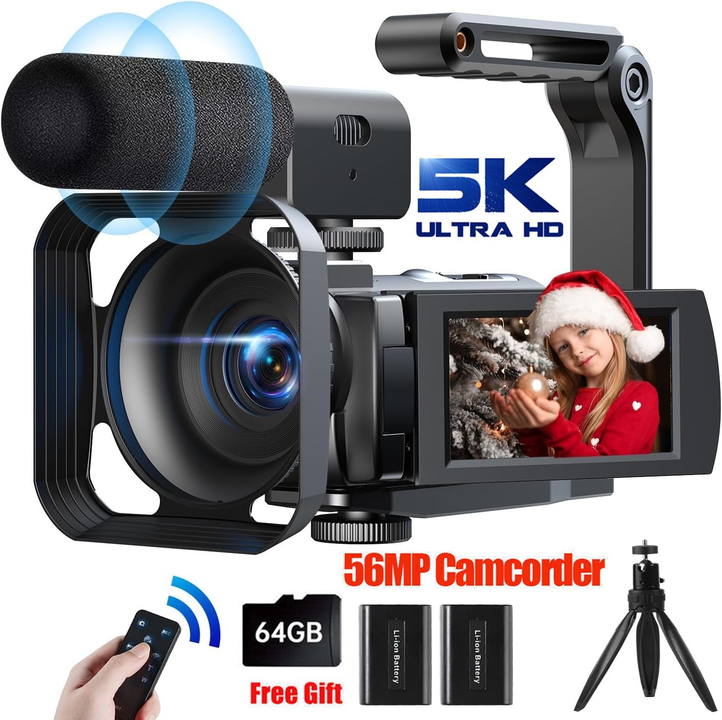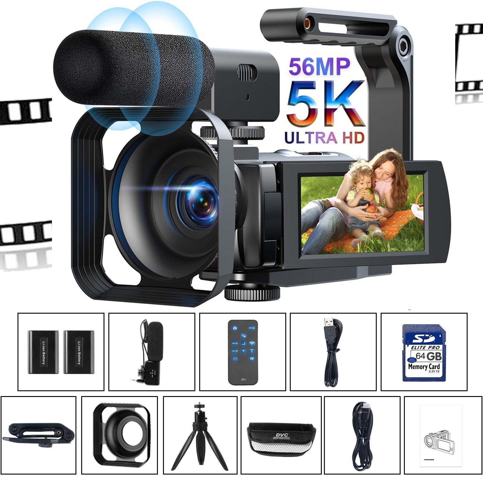 ✅5K Video Camera Camcorder WiFi 56MP Vlogging Camera for YouTube with Mic + 64GB