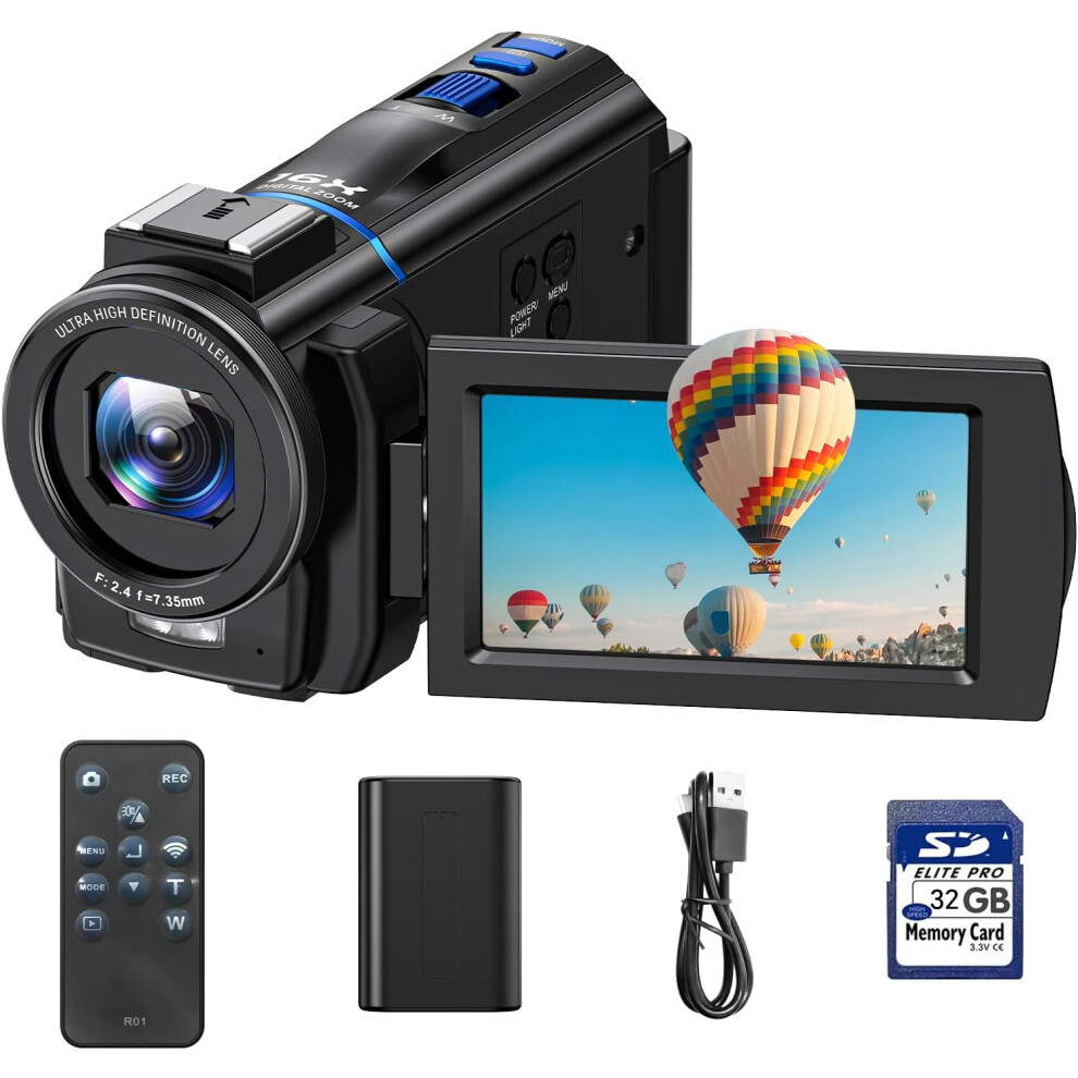 Camcorder Video Camera 5K, 56MP Youtube Vlogging Camera, 3" 270° Rotatable Touchscreen WiFi Cam corder, 16X Digital Zoom, Night Vision Camcorder with 64GB SD Card, 2 Batteries, Remote Control, Tripod