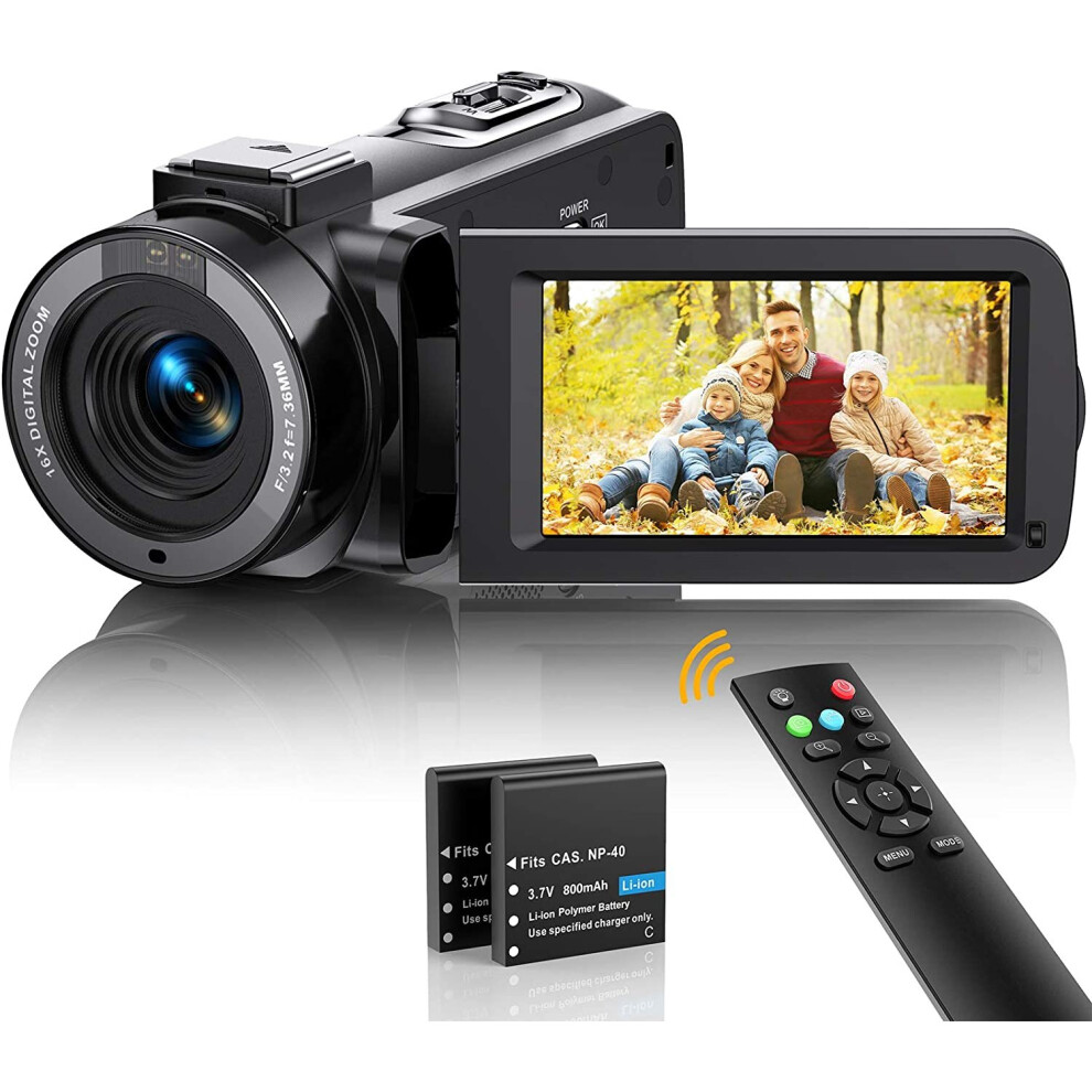 Sunscien Video Camera Camcorder, Full HD 1080P Digital YouTube Vlogging Camera Recorder,Video Camera 30FPS 3.0 Inch LCD 270 Rotatable Degrees IPS Screen with Remote Control 2 Batteries