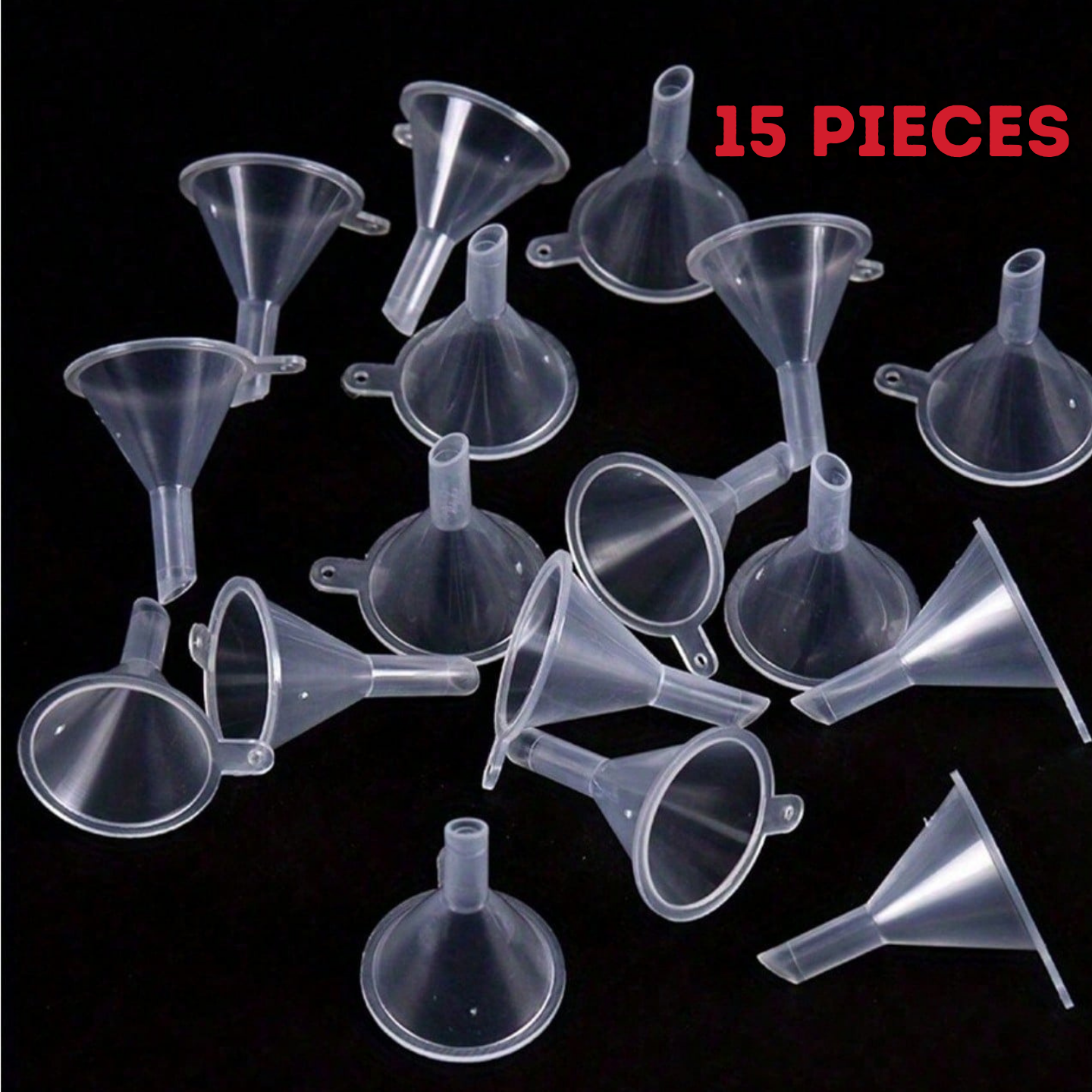 15 Pcs Funnels Set, Plastic Small Funnel, Travel Clear Mini Funnels for Bottle Filing Essential Oil, Perfume, Lab Bottles, Science Laboratory Chemicals, Spices, Arts, Crafts, Sand