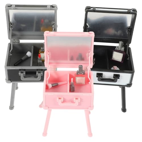 BESPORTBLE 3pcs Miniature Makeup Storage Box Set Doll House Decor Lipstick and Perfume Accessories Mini House Prop for Dollhouse Layout and Desktop Ornament in White, Pink, and Black