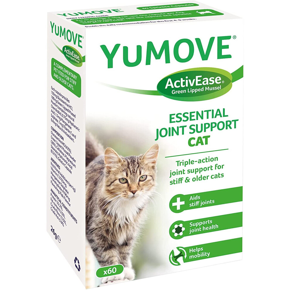 YuMOVE Cat Joint Supplement for Joint Care & Joint Aid, with Glucosamine, Chondroitin & Green Lipped Mussel for Cats of All Ages & Breeds, 60 Capsules