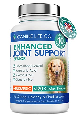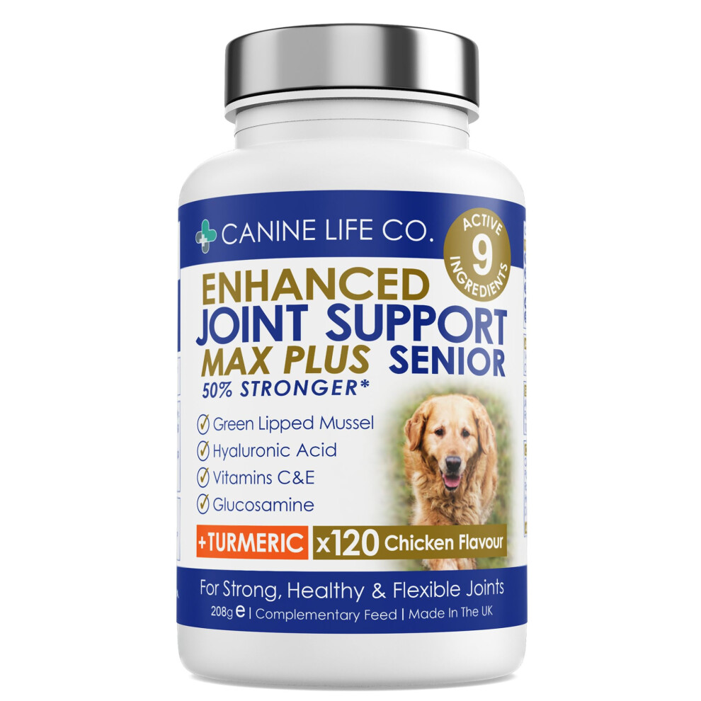 Senior MAX High Strength Dog Joint Supplements With Turmeric Glucosamine & Green Lipped Mussel For Older Stiffer Dogs Age 9+ 120 Chewable Tablets Made In UK - Canine Life Co. ((1 Pot (120 Tablets)))