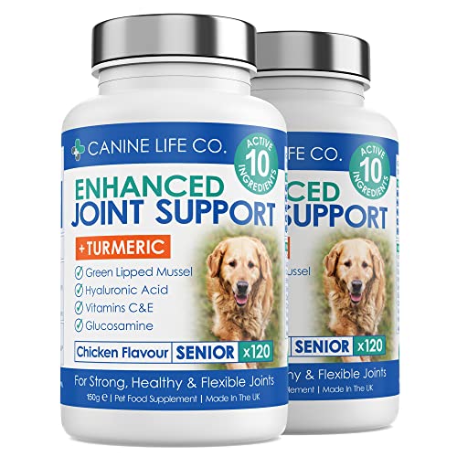 Senior Dog Joint Supplement High Strength With Turmeric Glucosamine & Green Lipped Mussel | For Older Stiffer Dogs Age 8+ | 120 Chewable Tablets | Made In The UK (2 Pots(240 Tablets))