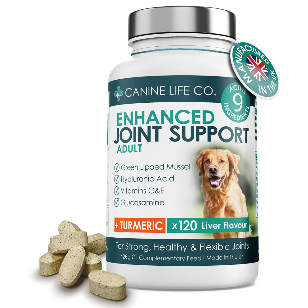 Enhanced Adult Dog Joint Supplements With Turmeric, Glucosamine & Green Lipped Mussel | 120 Chewable Tablets | Made In The UK (1 Pot (120 Tablets))