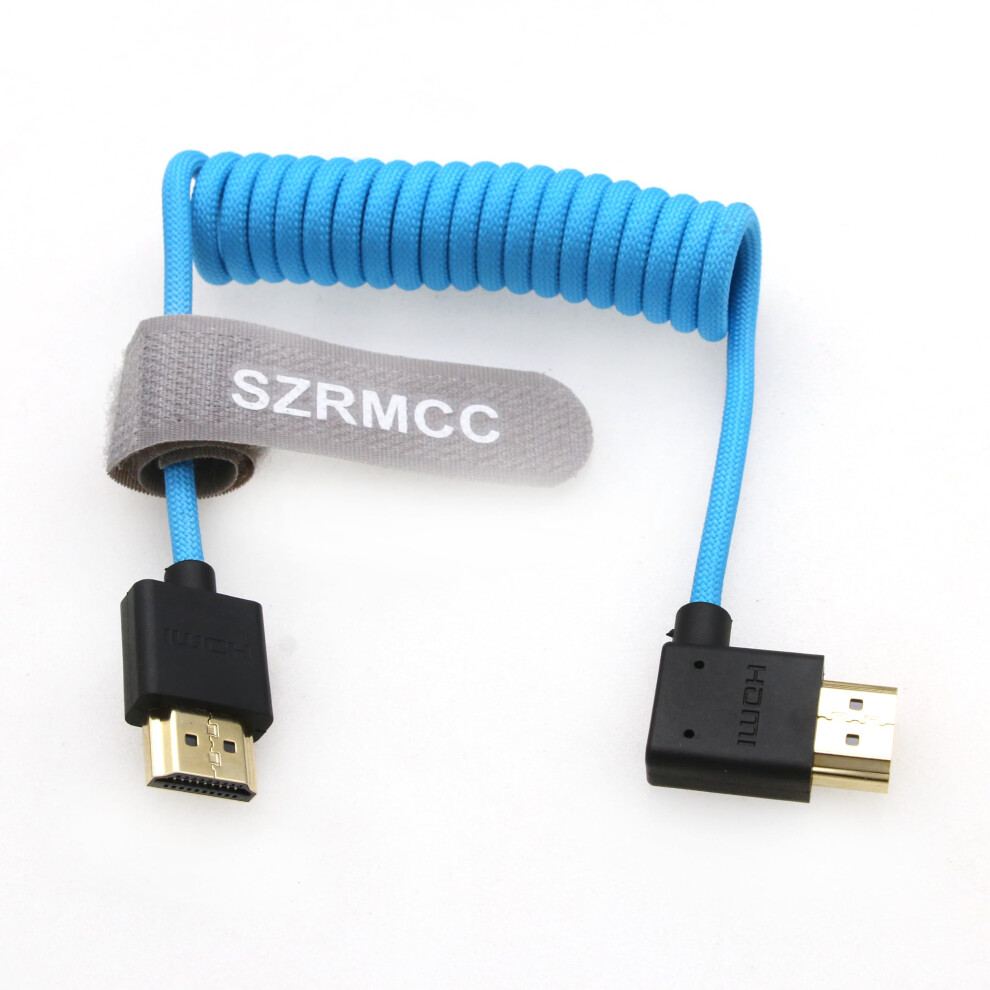 SZRMCC 8k 2.1 HDMI to HDMI Right Angle Ultra High Speed Coiled Braided Cable for Z Cam E2 Sony FX6 FX9 Canon EOS C70 C300 Portkeys BM5 Atomos Ninjav V