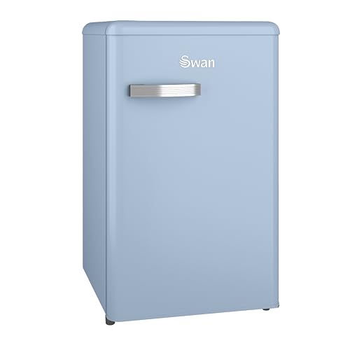 Swan SR11035BLNE Retro Under Counter Fridge with 77L Fridge Capacity, 13L Freezer Capacity, 1 Glass Shelf, 3 Door Shelves, 1 Salad Drawer, E Energy Rated, Blue