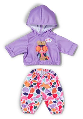 BABY born Hoodie Outfit, Purple Sweater and Colourful Trousers for 43cm Dolls, 837306 Zapf Creation