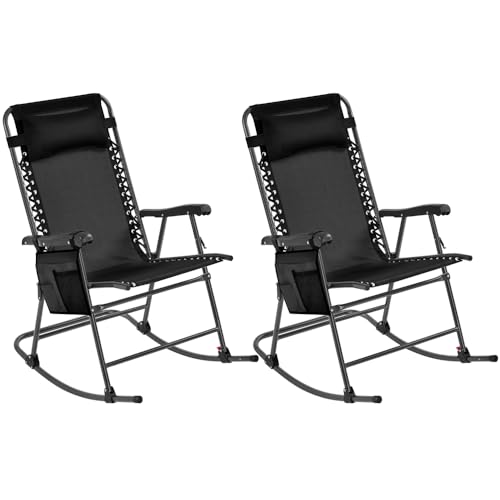 Yaheetech Rocking Chair Set of 2 Outdoor Zero Gravity Folding Chairs with Cupholder/Pillow Rocking Chairs Foldable Outdoor Lounge Chair for Outside Lawn Ergonomic Design for Rest, Black