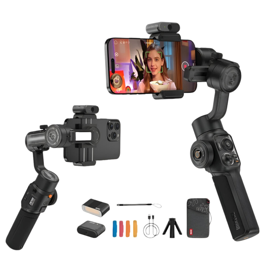 Zhiyun Smooth 5S AI Combo: Advanced 3-Axis Handheld Gimbal Stabilizer with AI Tracking & Light Tripod for iPhone 15/14 & Android