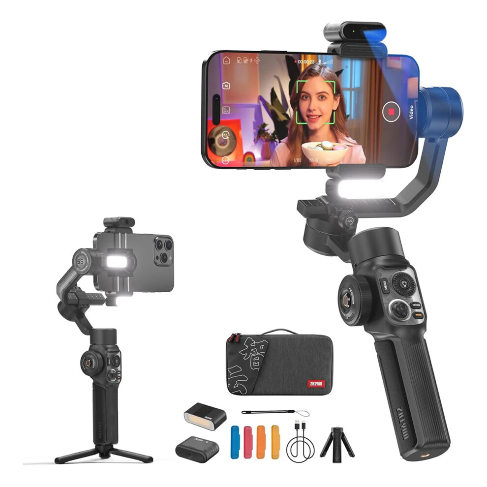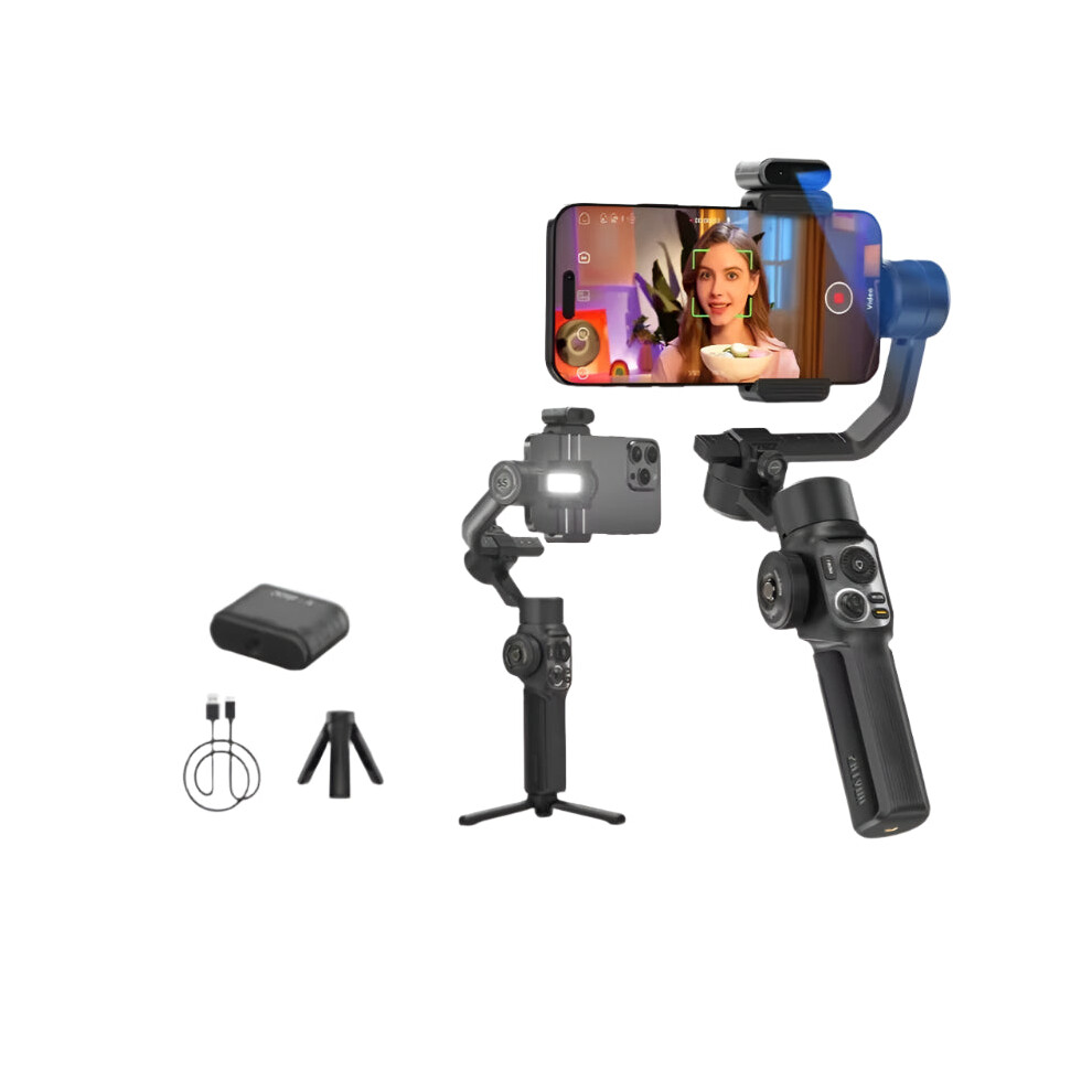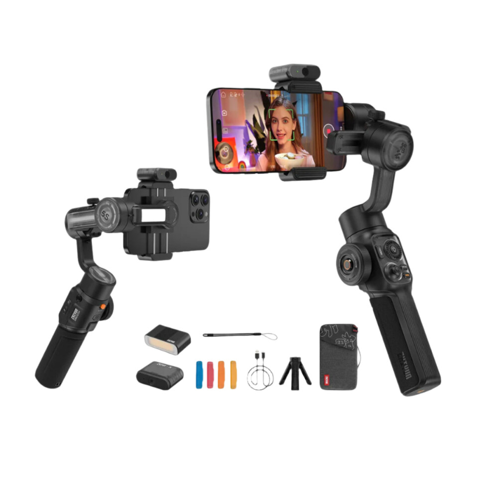 Zhiyun Smooth 5S AI Smartphone Gimbal - 3-Axis Stabilizer with Fill Light for iPhone 15 Pro Max & Android