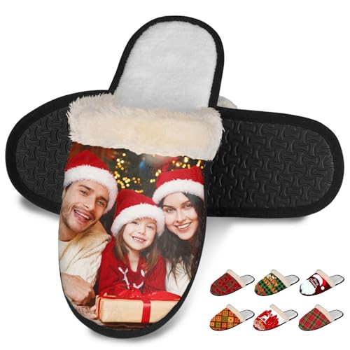 Christmas Cotton Slippers Personalised Home Indoor Slippers For Women Men With Photo,Christmas Gifts (Custom Image Design, A, Adult, Women, One Size, Alpha, UK Footwear Size System, Medium)