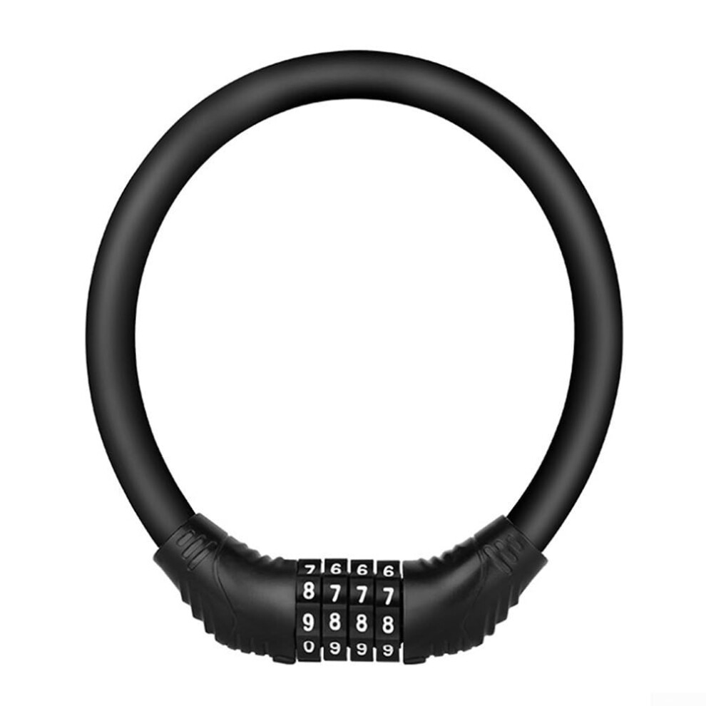 Portable Anti-Theft Lock 4-Digit Zinc Alloy PVC-Coated Weatherproof Security Cable For Mountain, Road And Electric Bikes And Scooters Black