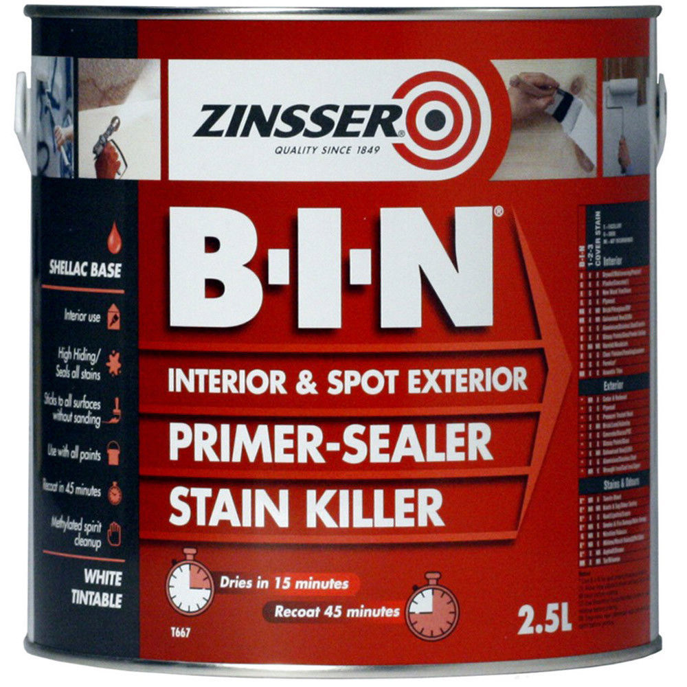 Zinsser B.I.N Primer & Sealer Stain Killer Paint 2.5 Litre ZINBIN25L