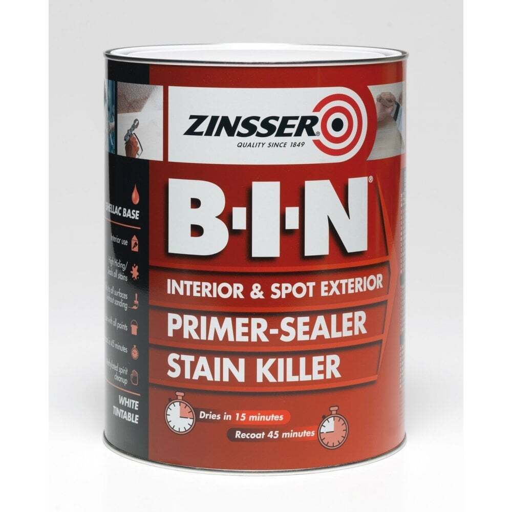 Zinsser B.I.N Primer & Sealer Stain Killer Paint 1 Litre ZINBIN1L