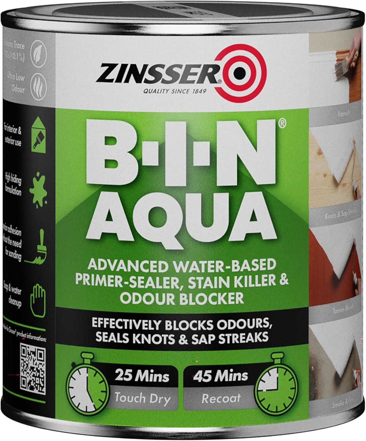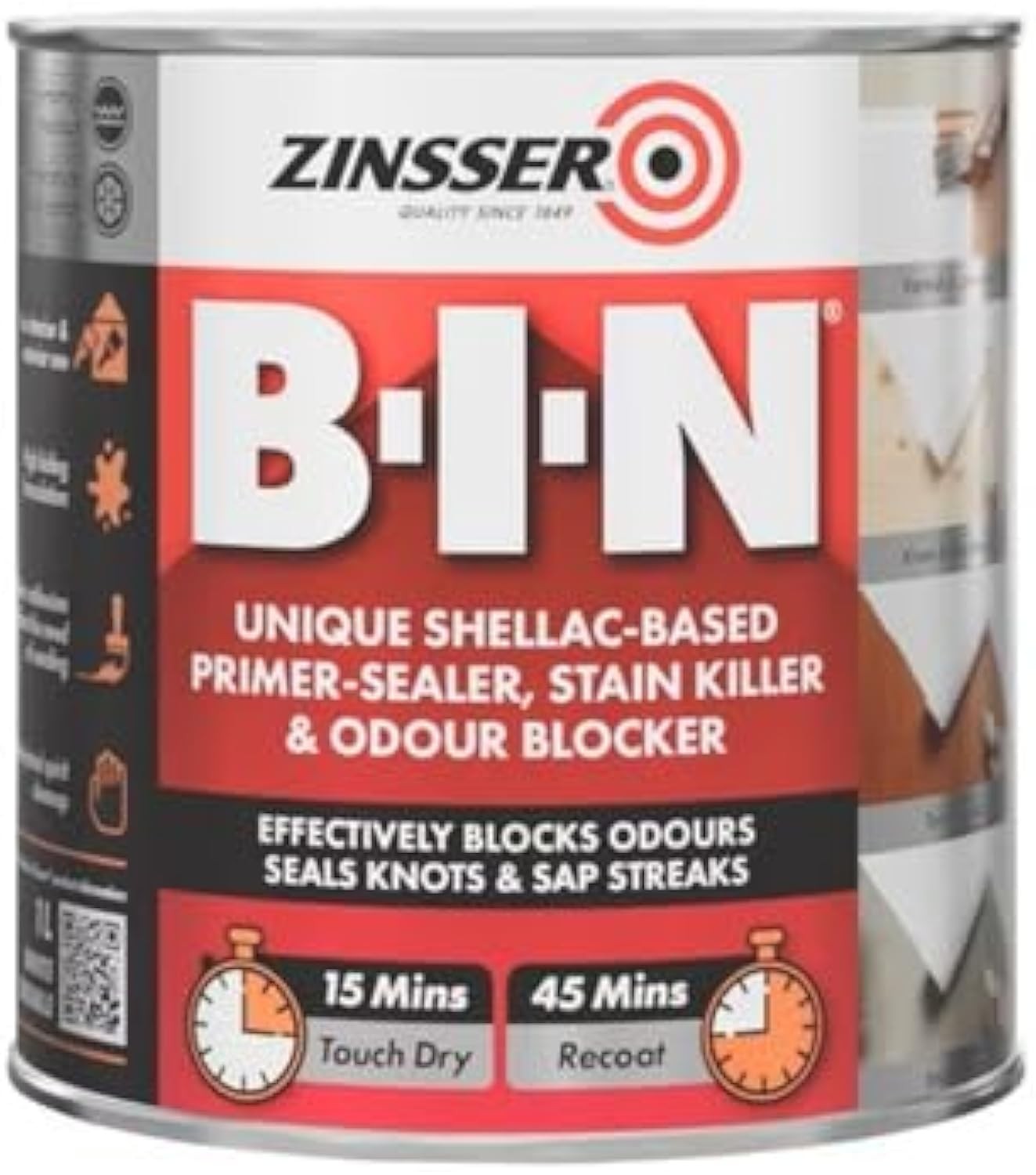 Zinsser BIN Primer Sealer and Stain Killer 1 LITRE | Odour Blocking Primer