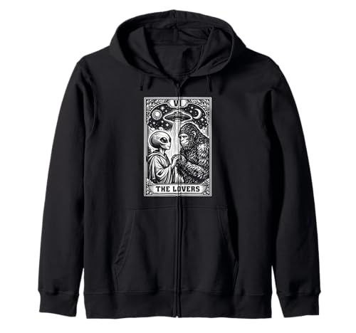 The Lovers Alien Bigfoot Witchy Occult Tarot Card Zip Hoodie
