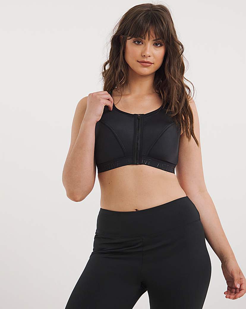 Jockey Women's Mid Impact Zip Front Sports Bra, Opaque, Black, XL