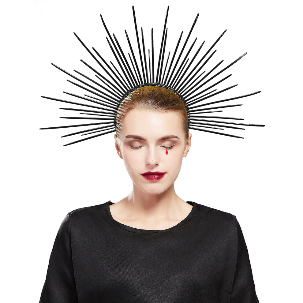 Halo Crown Headband with Spiked Design, Black Zip Tie Angel Costume Headpiece for Women
