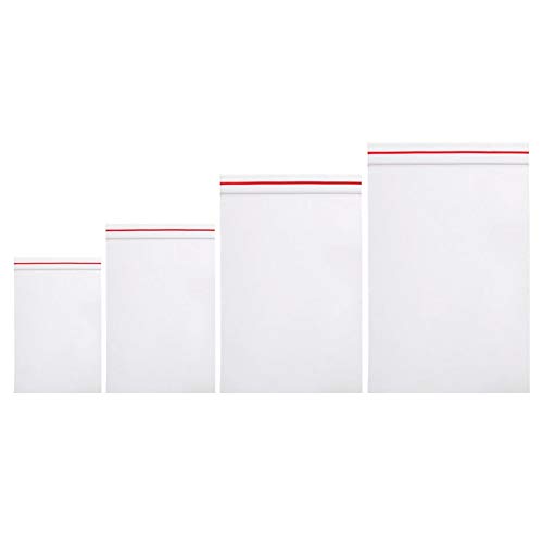 metagio 400 Pcs Grip Seal Bags Clear Plastic Bags, Resealable Poly Zip Lock Storage Pouch Bag for Kitchen Jewellery Craft Beads, 4 Sizes