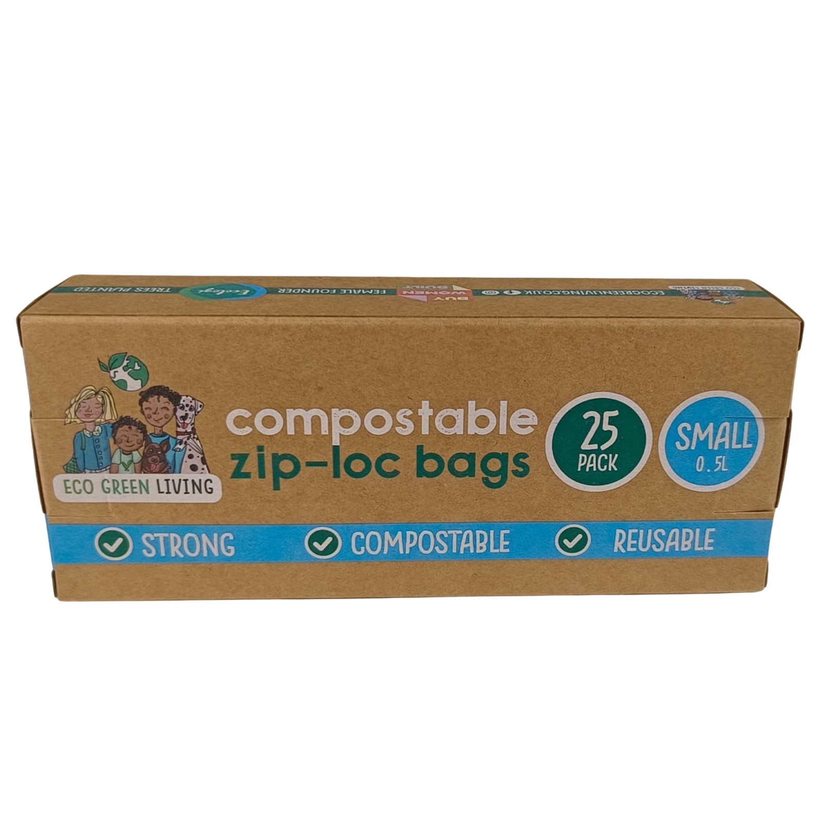 Eco Green Living 0.5L Food Storage Bag 25 Pack Plastic Free Zip Lock Freezer Bag
