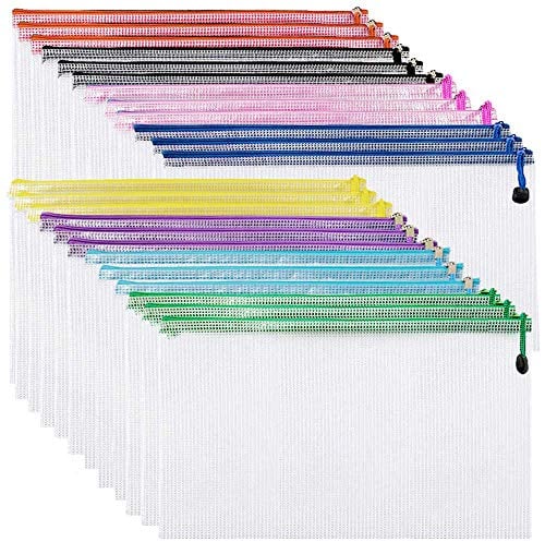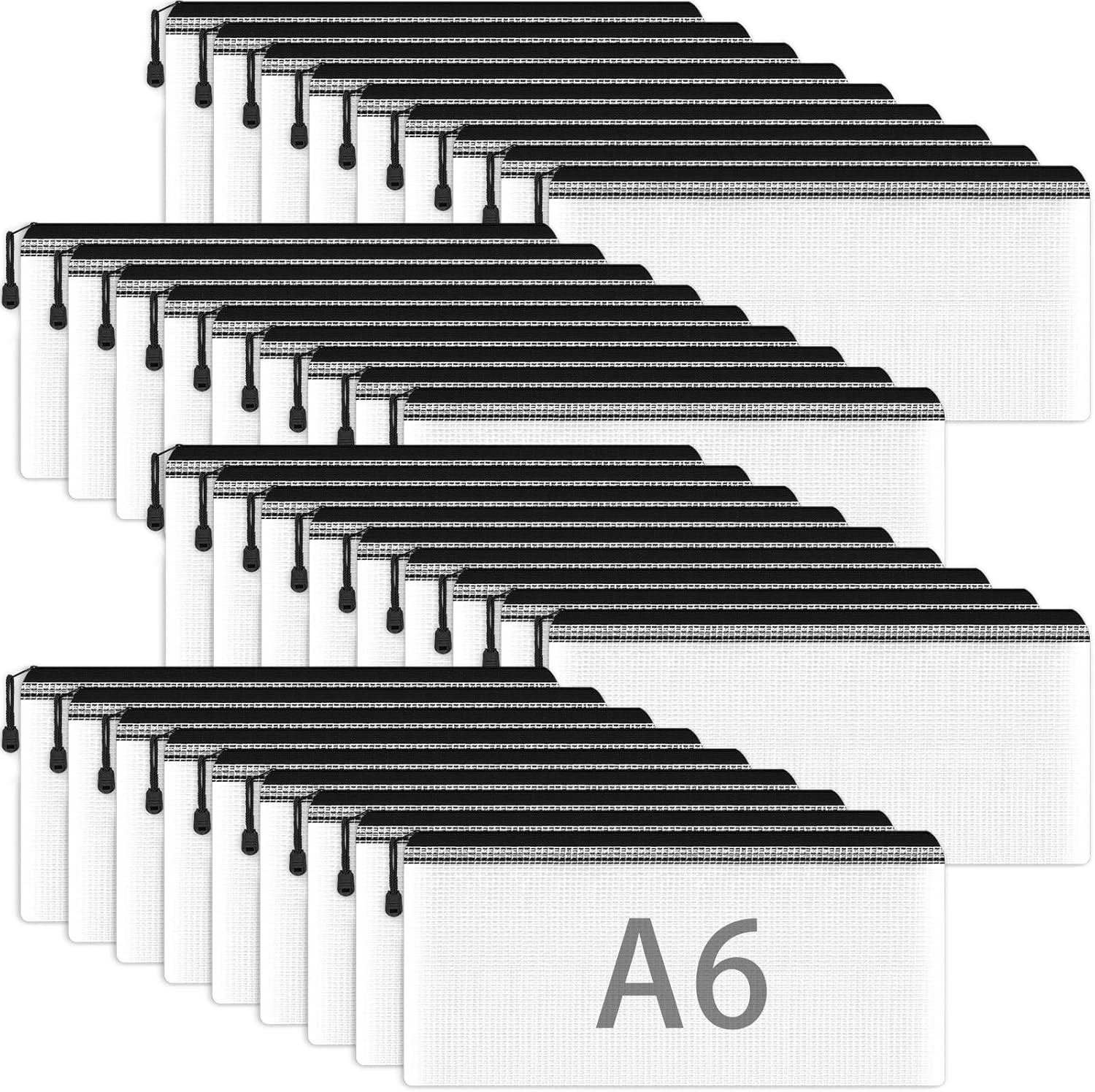 Smarpau A6 Clear Pencil Case, 36 PCS Mesh Pencil Pouch Zip Lock Bag Mesh Docume