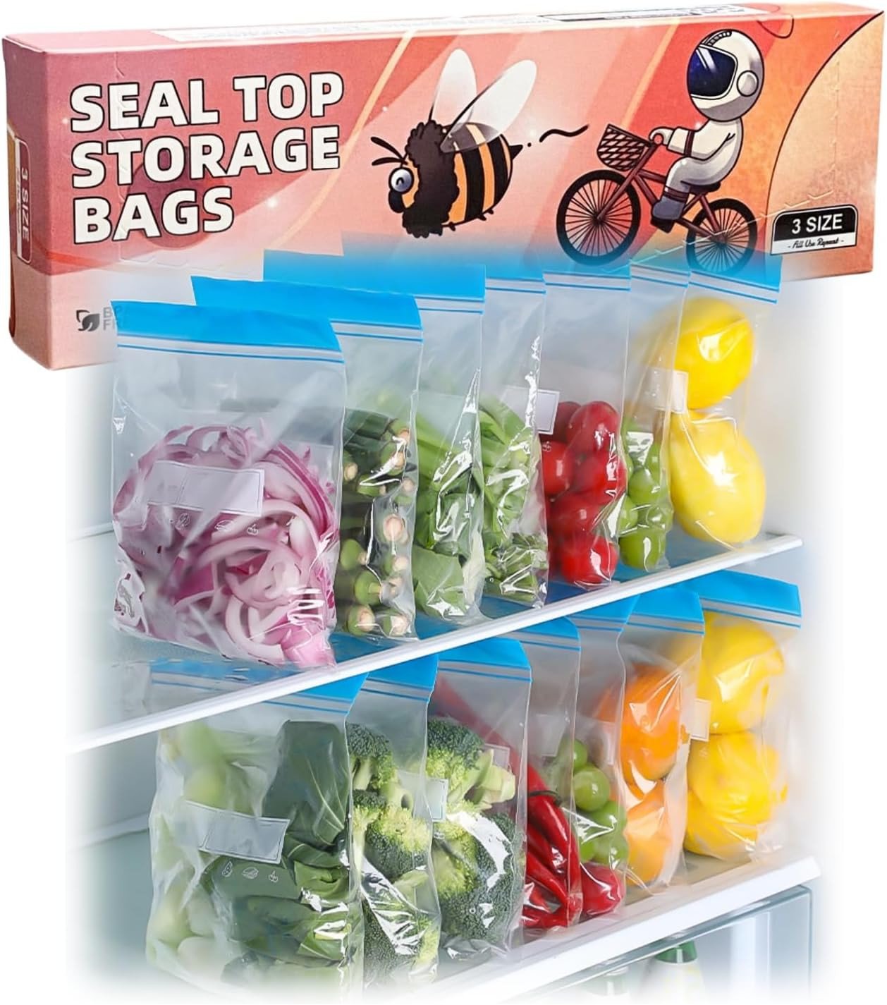 70P Bpa-Free Ziplock Bags for Foods Storage,Reusable 3 Size Zip Lock Freezer Bag