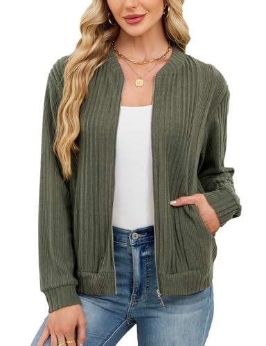 Aottori Ladies Cardigans Lightweight Zip Up Cardigans for Women UK Long Sleeve Open Front Knitwear Solid Casual Outwear Tops Green XXL