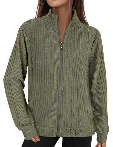 Ladies Sweatshirts Tunic Tops for Women UK Zip Up Cardigans for Womens Long Sleeve Stand Collar Autumn Thermal Hoodie Tops Ribbed Knit Lightweight Top Jackets Army Green