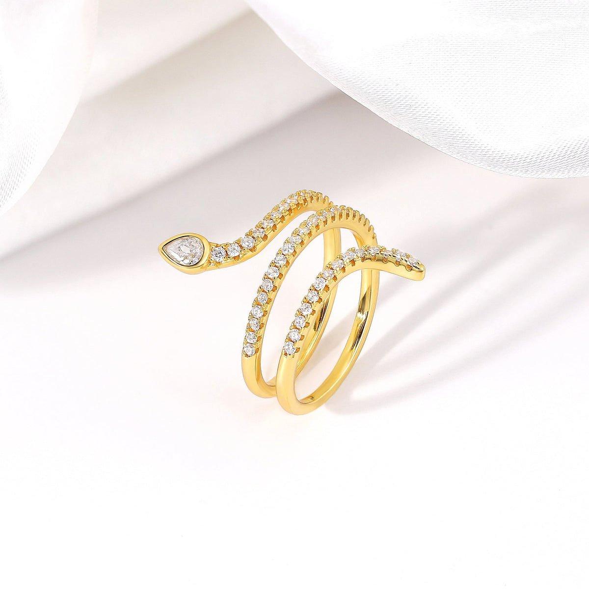 Cleopatra Twice Coiled Zirconia Pavé Snake Ring 18ct Gold on Sterling Silver