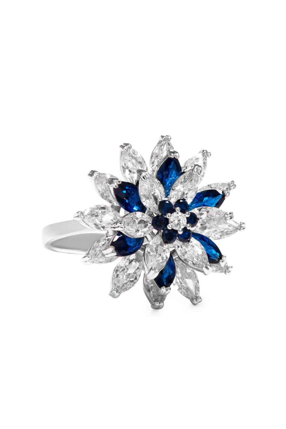 Silver Plated Blue Cubic Zirconia Flower Ring