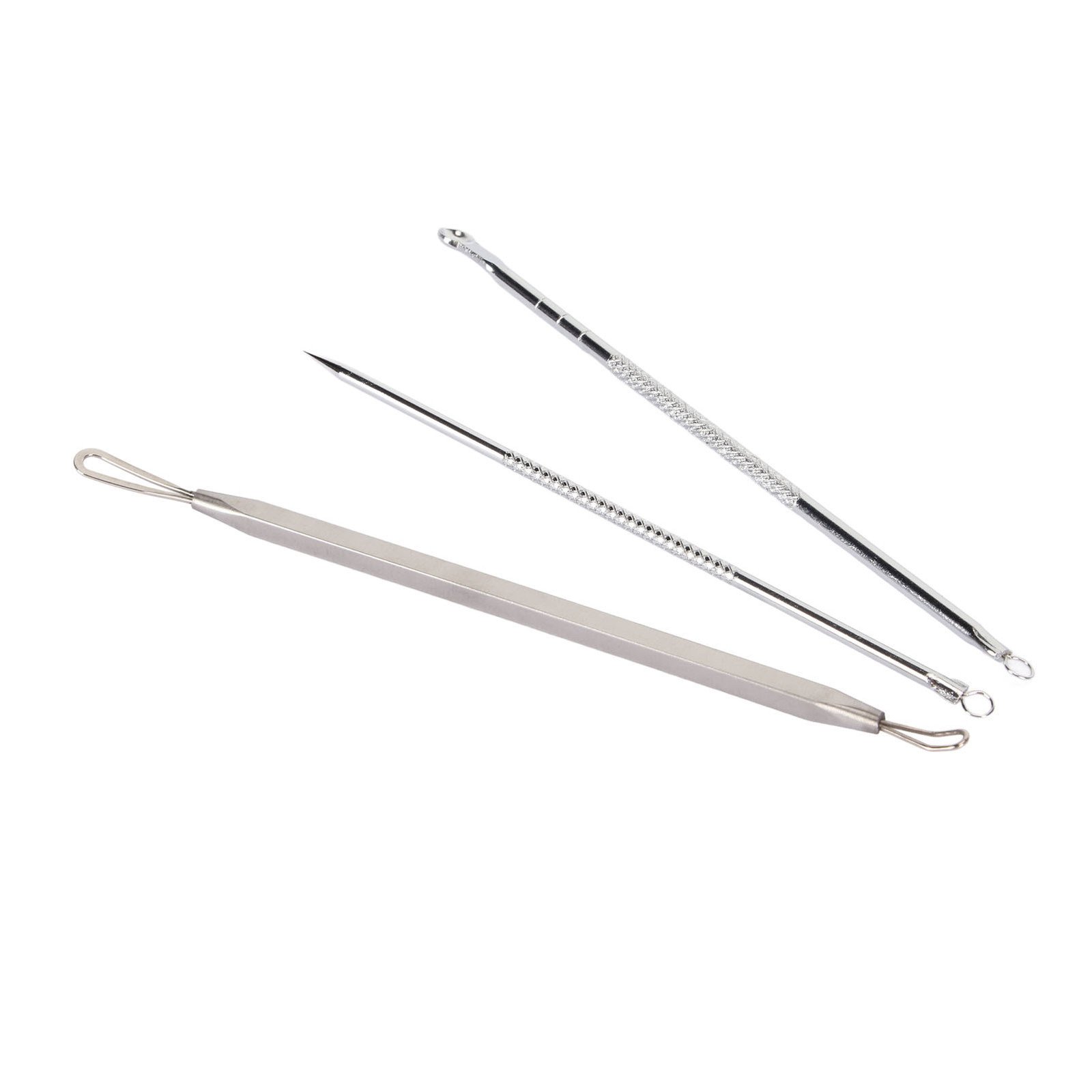 .›3pcs Face Nose Zit Pimple Extractor Stainless Steel Double Ended Blackhead Whi