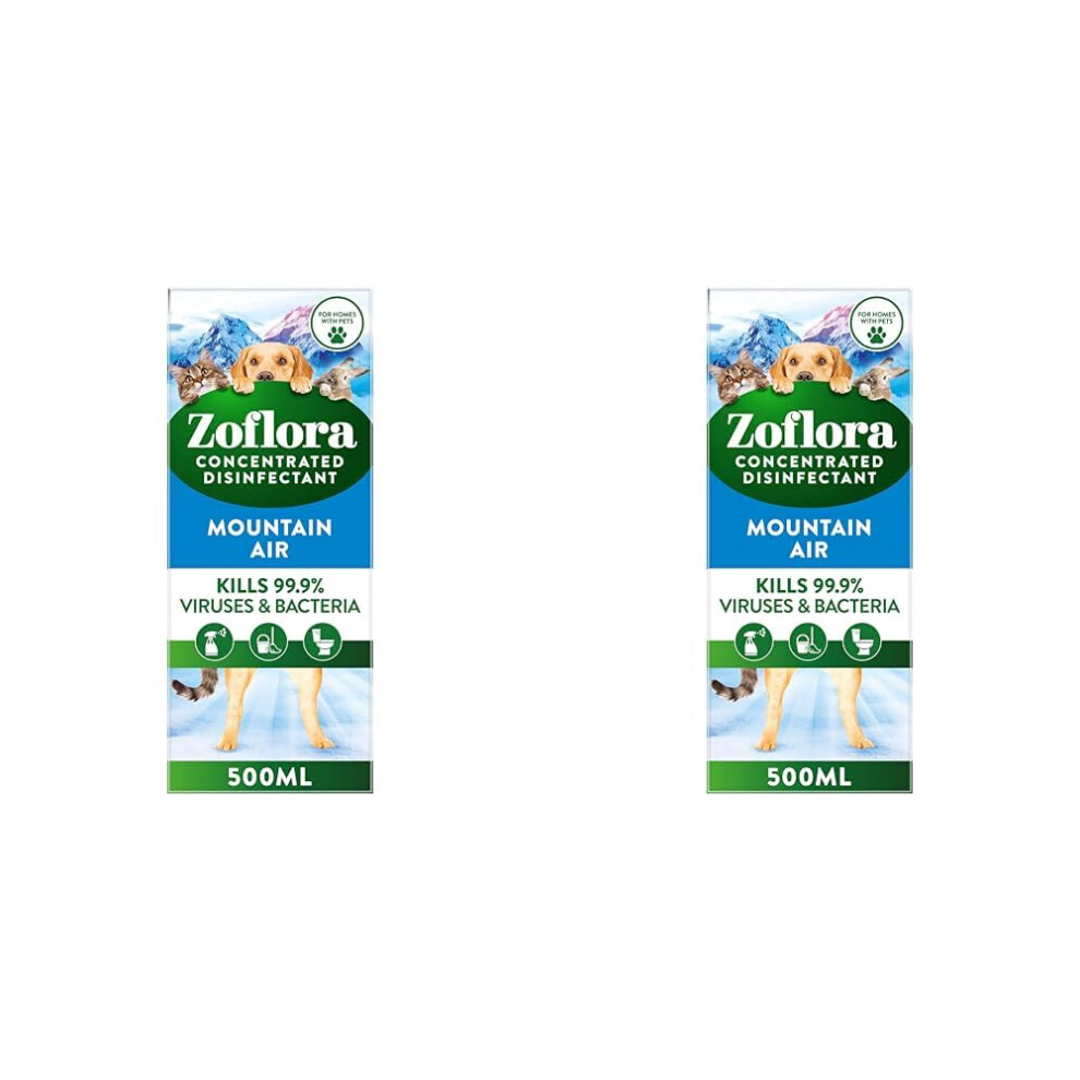 Zoflora Fresh Home, Mountain Air 500ml, Concentrated 3-in-1 Multipurpose Disinfectant Kills 99.9% of Bacteria & Viruses (Pack of 2)