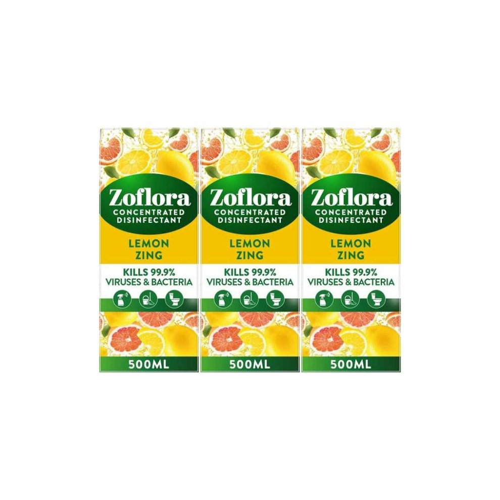 Zoflora 3-in-1 Concentrated Disinfectant Lemon Zing, 500ml (Pack of 3) - Kills 99.9% bacteria & viruses, odour elimination, long-lasting fragrance