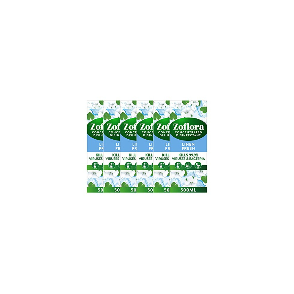 Zoflora Linen Fresh All Purpose Concentrated Disinfectant Liquid 6 X 500 ml, Antibacterial & Multi-Surface, Pet Safe Disinfectant, Kills 99.9% Of Bacteria & Viruses