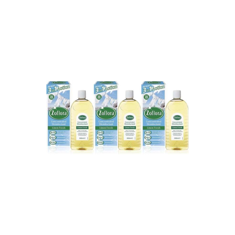 Zoflora 3 in 1 Action Concentrated Disinfectant Linen Fresh 500ml (Pack of 3)