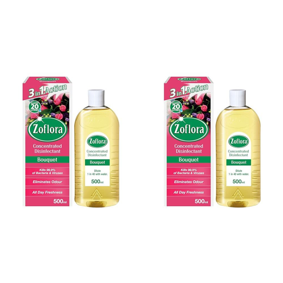 Zoflora Bouquet 500ml, Concentrated Antibacterial Disinfectant, All Purpose Cleaner, Surface Cleaning Solution, Kills Bacteria and Viruses (Pack 2)