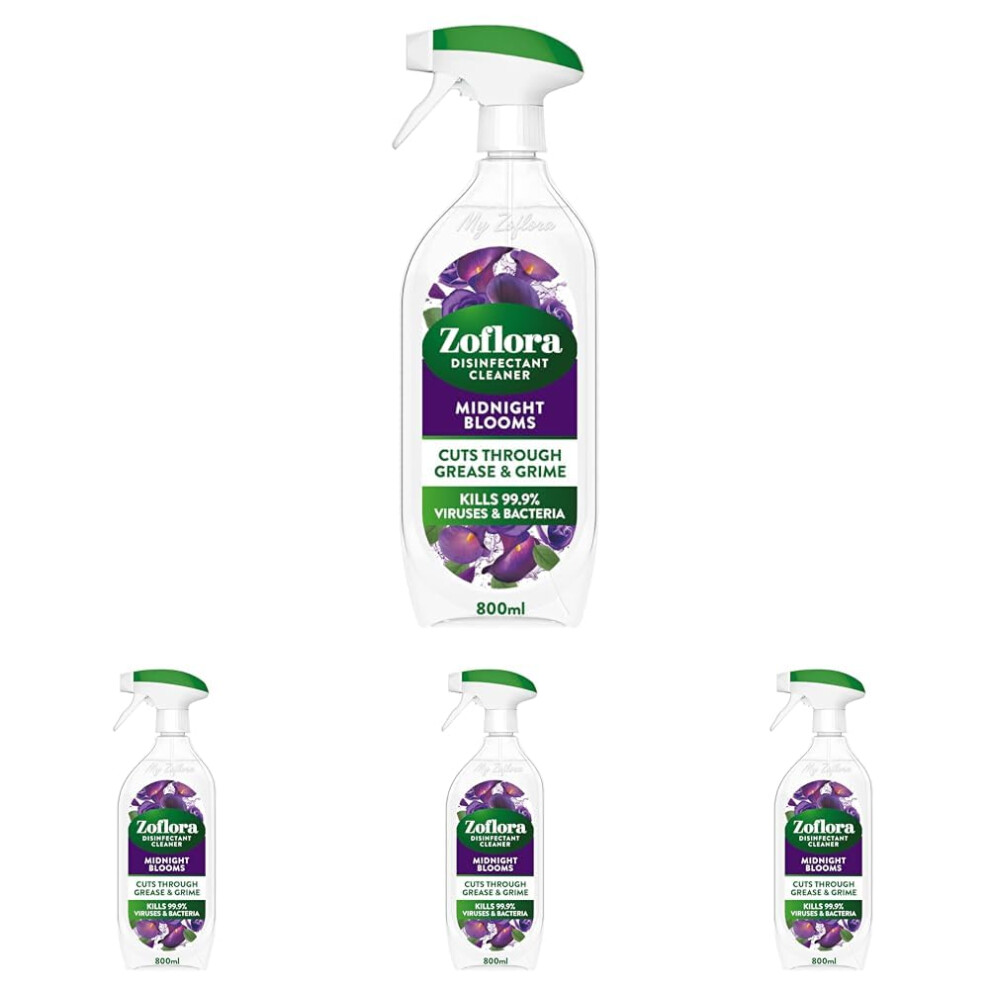 Zoflora Midnight Blooms Multipurpose Disinfectant Trigger Spray, 1 x 800ml, Floral Antibacterial Multi-Surface 99.9% of Bacteria & Viruses (Pack of 4)