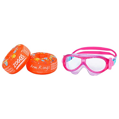 Zoggs Arm Rings, Dual Buoyancy Arm Bands, Swimming Armbands for Kids,Orange/Multi,1-6 years, 11-30kg & Kids' Phantom Mask with UV Protection And Anti-fog Swimming Goggles, Pink/Purple/Aqua, 0-6 Years