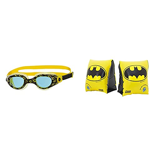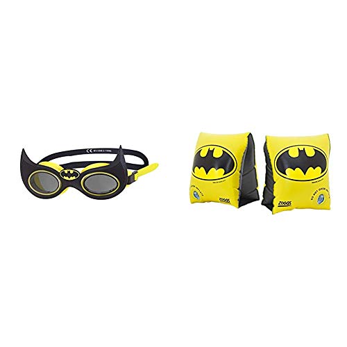 Zoggs Kids' DC Super Heroes Character Swimming Goggles, Batman, 6-14 Years & Kids' DC Super Heroes Batman Inflatable Swimming Armbands, Black/Yellow, 2-6 Years