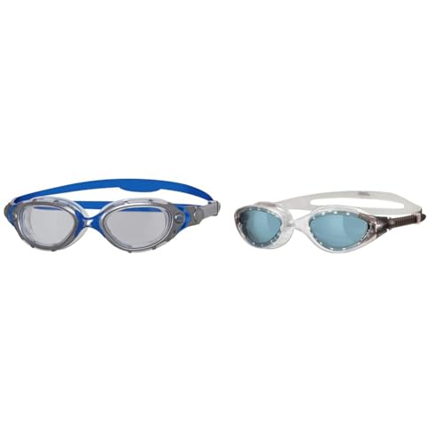 Zoggs Flex Swimming Goggles, 180 Degree Peripheral Vision - Blue/White & Adults Panorama Smoke Tinted Lenses Goggles with UV Protection - Clear