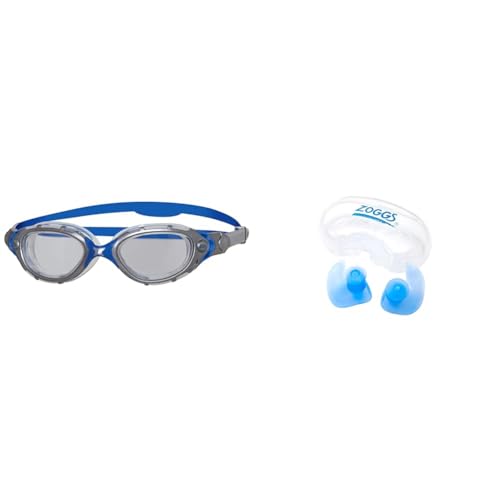 Zoggs Flex Swimming Goggles, 180 Degree Peripheral Vision - Blue/White & Aqua Plugz, Ear Plugs for Swimming, Reusable Silicone Ear Plugs (packaging may vary) Blue 14+ Years