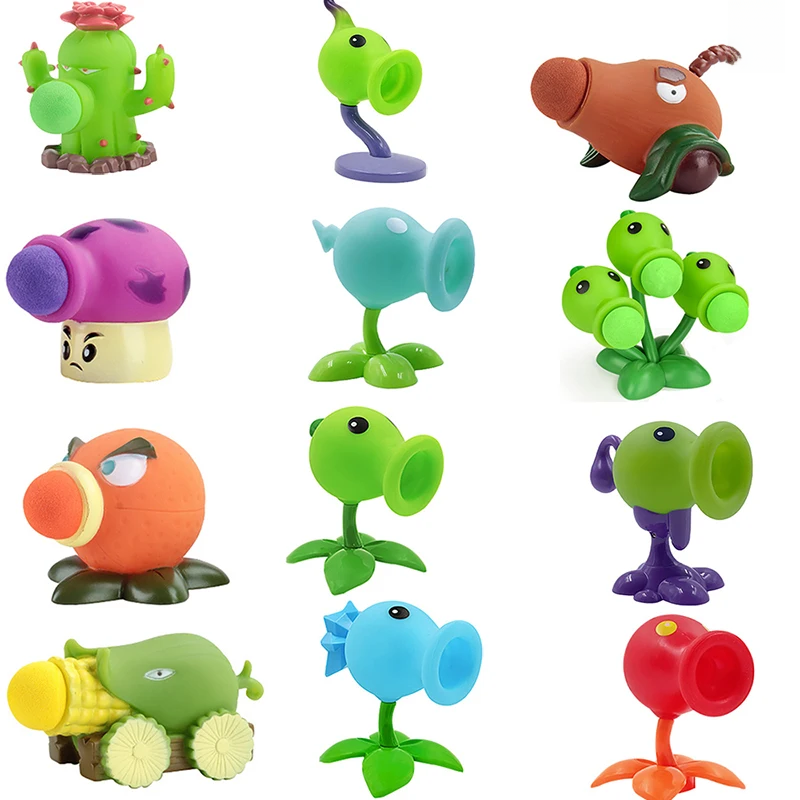 (3) Plant Vs. Zombie Peashooter Gatling Boss Shooter Action Figure Model Building Blocks Shooting Gashapon Toy Kids Gifts For Boy