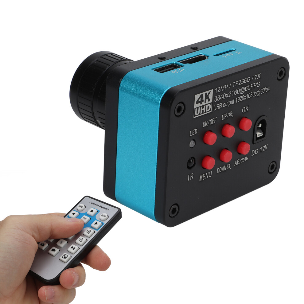 4K 12MP Industrial Video Microscope Camera 7X Zoom 35mm F1.7 Lens EU Plug
