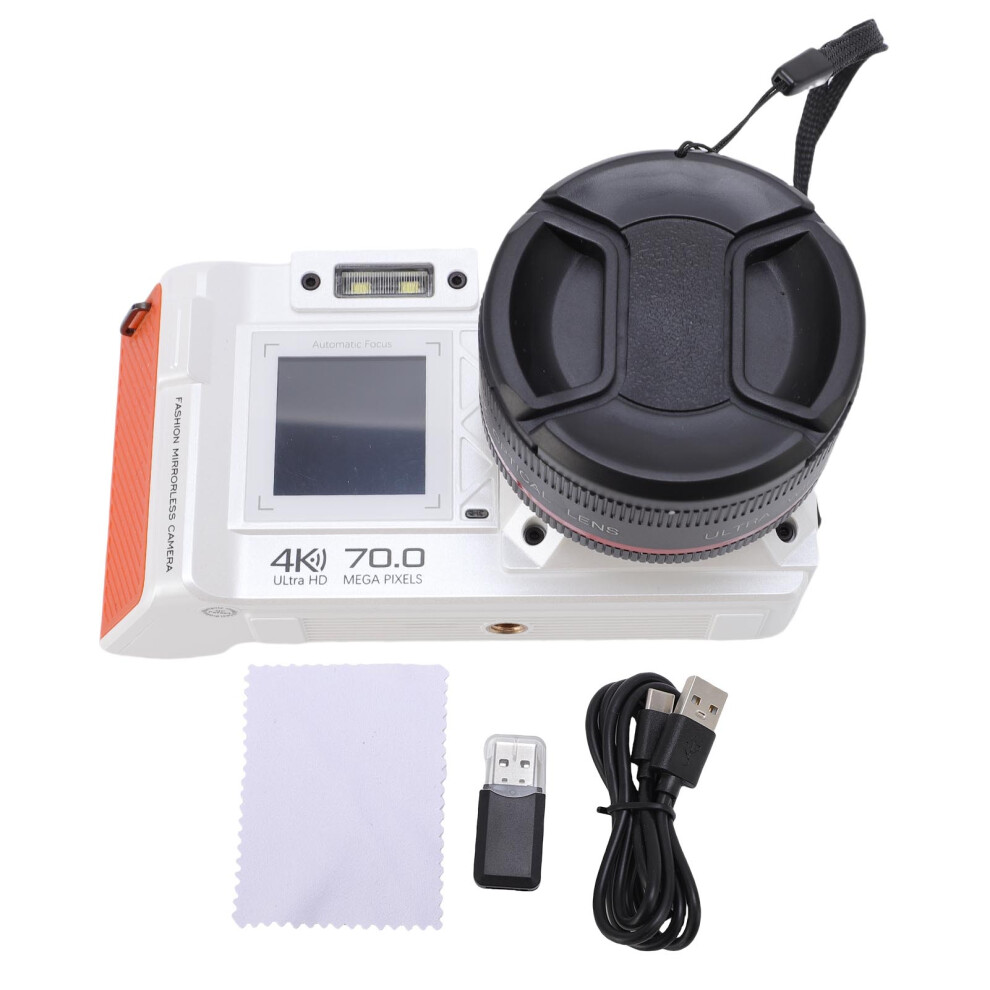 4K 70MP Digital Camera with 50X Zoom, Dual Screen, F1.8 Wide-Angle in White