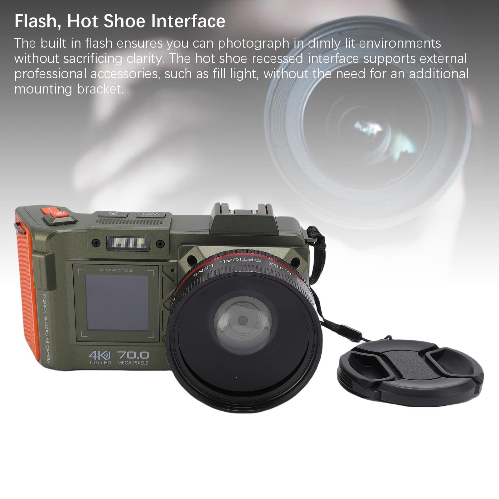 Sonew Advanced 4K Digital Camera with 70MP and 50X Zoom Featuring Auto Focus and Dual Screen for Travel - Wide Angle F1.8 DSLR Camera with Built-in Flash, Green (Black)